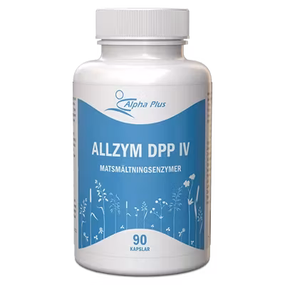 AllZym DPP IV är en vidareutveckling av Alpha Plus klassiska enzymblend, designad för att underlätta spjälkning av protein (inklusive gluten), kolhydrater och fett. Den innehåller en rik kombination av proteaser, peptidaser, amylas, lipas, laktas, cellulaser och andra enzymer – inklusive det specialiserade enzymet DPP‑IV, som hjälper kroppen att bryta ner glutenpeptider effektivt. Ett idealiskt hjälpemedel vid tyngre måltider eller känslighet mot gluten.