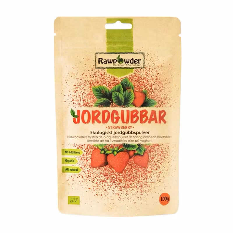 Jordgubbspulver | 100âŻg | InnehĂ„ller C-vitamin, folsyra och antioxidanter |