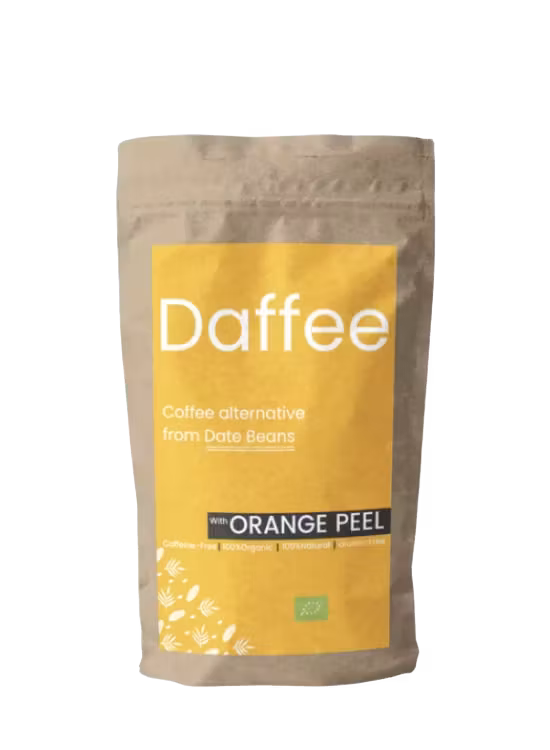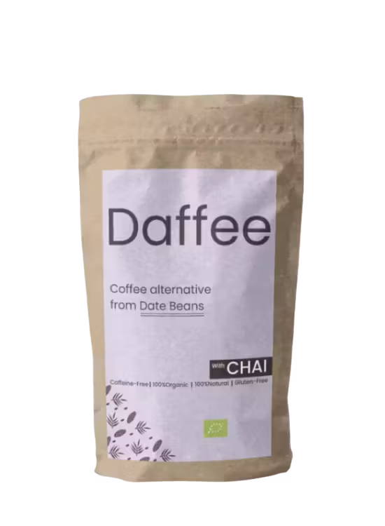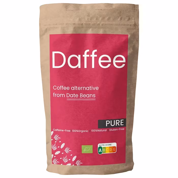 Upptäck Daffee Date Bean Coffee – ett naturligt, koffeinfritt och hållbart alternativ till kaffe, tillverkat av rostade ekologiska dadelkärnor.