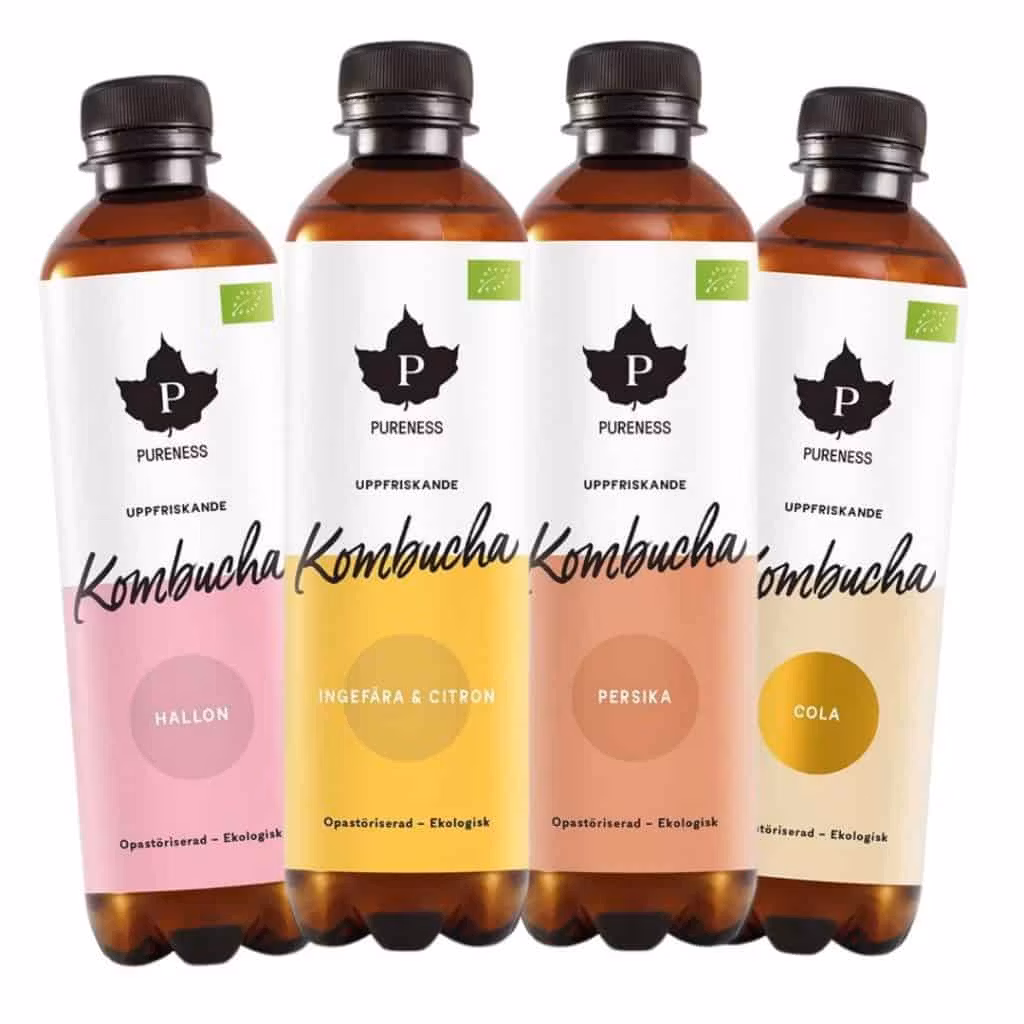 Pureness Kombucha bryggs hantverksmässigt i Finland på ekologiskt grönt te, filtrerat vatten, ekologiskt rörsocker och en levande kombuchakultur – helt utan tillsatser, koncentrat eller konserveringsmedel.