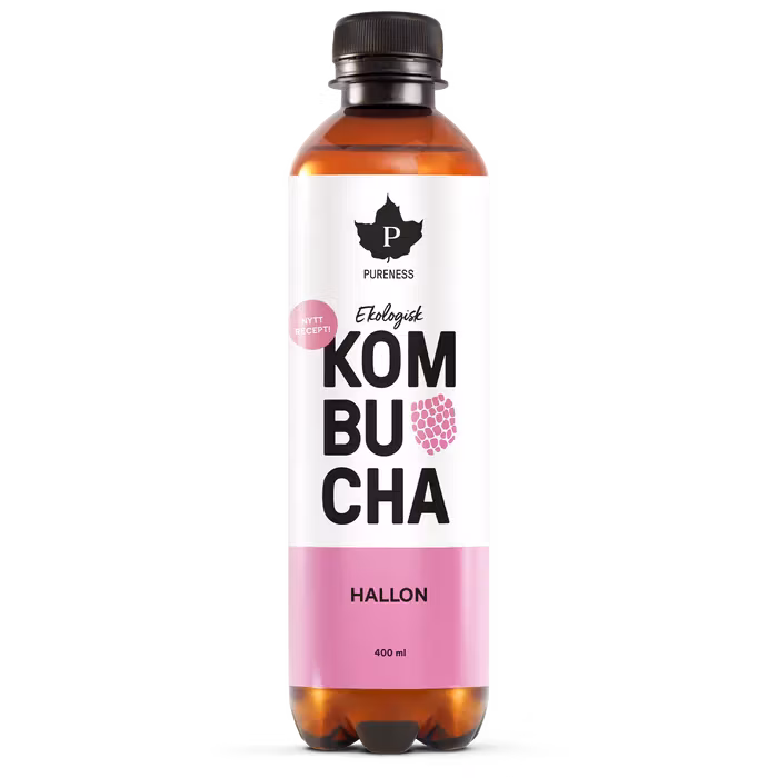 | Hallon (Raspberry) | Frisk och bärig med balanserad syrlighet och lätt sötma. | Mineralvatten, ekologiskt rörsocker, ekologisk kombuchakultur, koldioxid, ekologiskt grönt te, naturlig arom (hallon). |