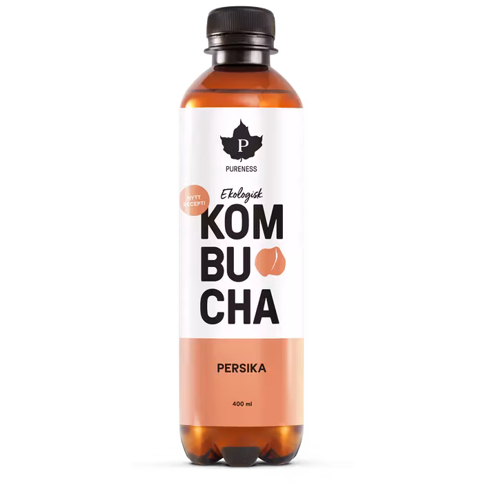 | Persika (Peach) | Mjuk och fruktig med rund sötma från solmogen persika. | Mineralvatten, ekologiskt rörsocker, ekologisk kombuchakultur, koldioxid, ekologiskt grönt te, naturlig arom (persika). |