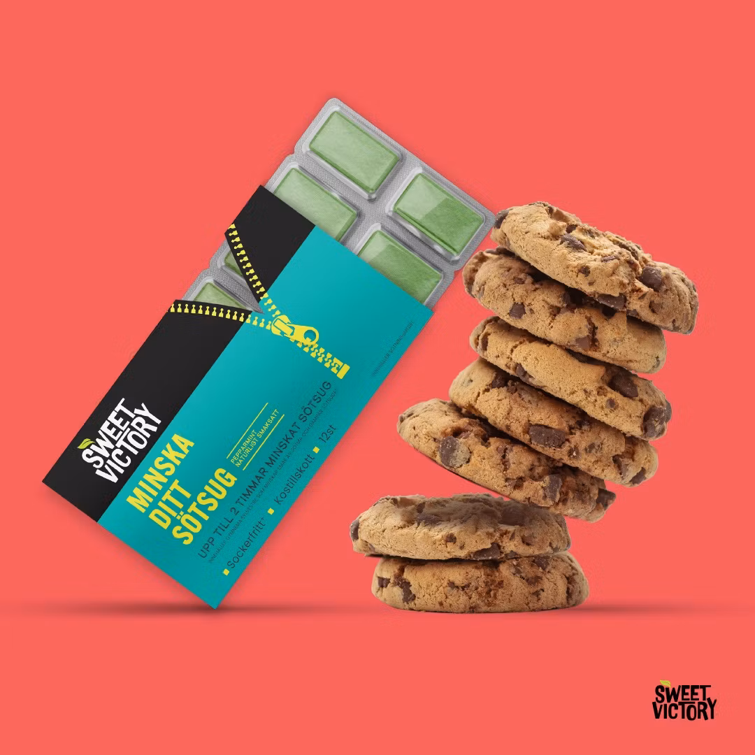 Sweet Victory Gum är ett innovativt tuggummi som är utformat för att hjälpa till att minska sötsug och sötsaker. Varje förpackning innehåller 12 tuggummin som är berikade med naturliga ingredienser som kan bidra till att balansera blodsockernivåerna och minska suget efter socker. Dessa tuggummin är ett praktiskt och smidigt sätt att hantera cravings och främja en sundare kost. Sweet Victory är ett unikt mintstuggummi som innehåller extrakt av växten Gymnema Sylvestere. Denna aktiva ingrediens blockerar smak av socker och minskar sötsug. Direkt effekt som håller upp till 2 timmar.