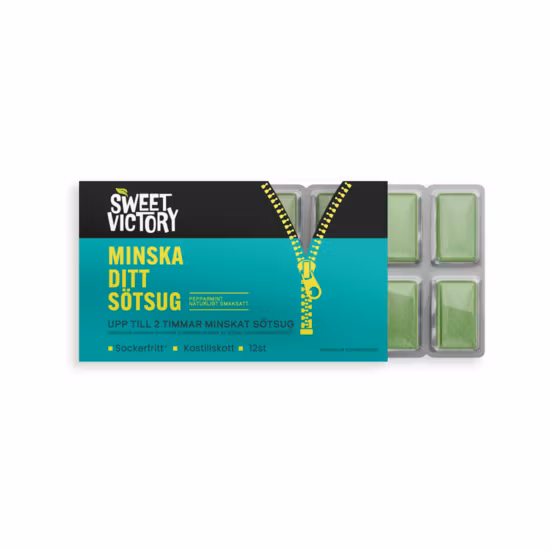 Sweet Victory Gum är ett innovativt tuggummi med frisk smak av pepparmint som hjälper till att minska suget efter sötsaker.